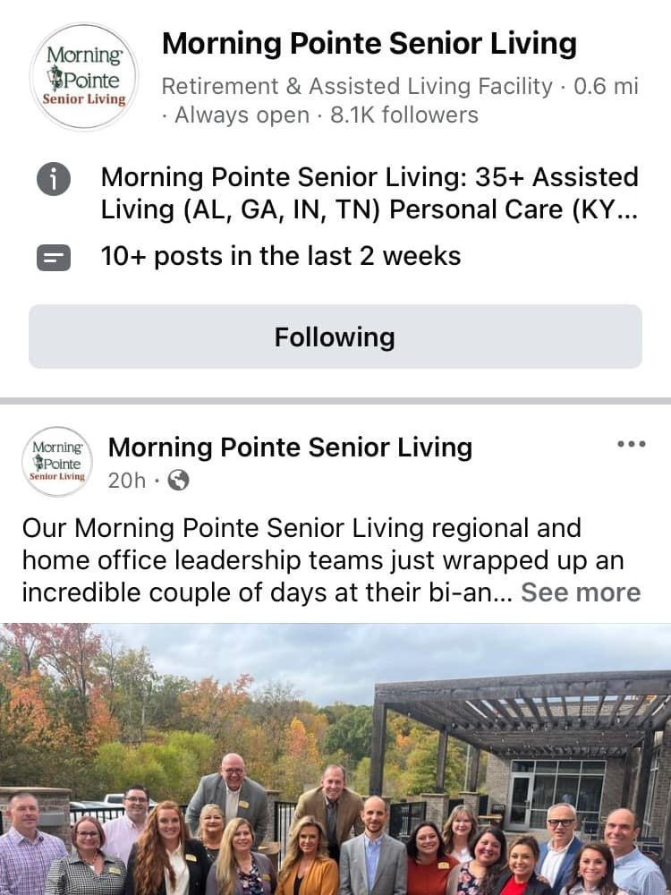 To connect families beyond email and calls, Morning Pointe maintains active social media channels that serve as a bridge between communities and families. Our community Facebook pages are great resources for seeing snapshots of events, resident spotlights, and community news.