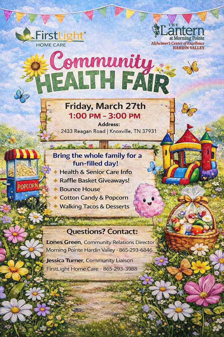 Knoxville, TN (March 20, 2026) — Families across the Knoxville area are invited to enjoy an afternoon of community connection, health information, and family-friendly activities at an upcoming Community Health Fair hosted by Morning Pointe Senior Living in Hardin Valley. The event will take place on Friday, March 27, from 1 to 3 p.m. at