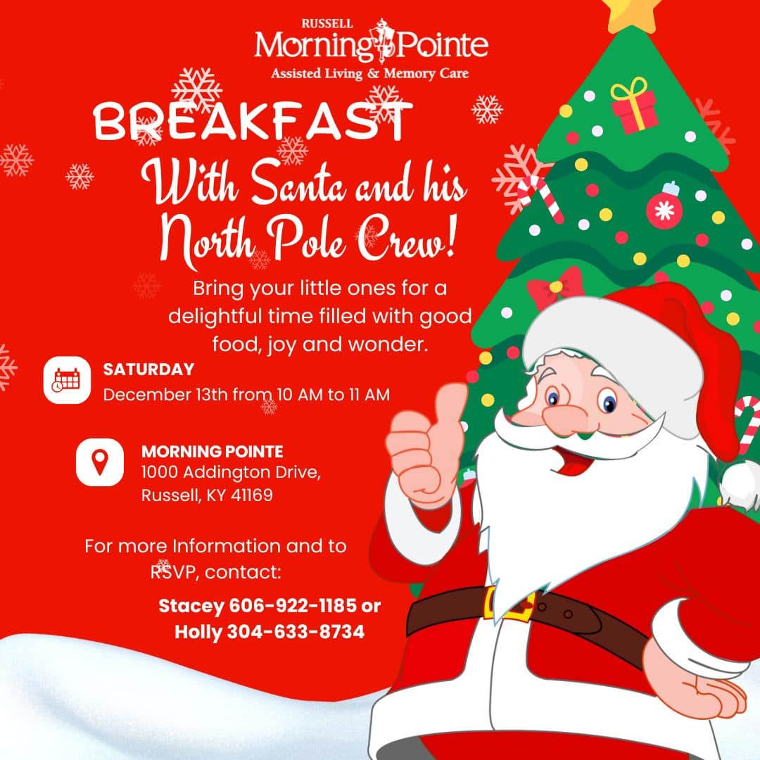 RUSSELL, KY — November 26, 2025 — Morning Pointe of Russell Assisted Living and Memory Care is welcoming families, neighbors, and community friends to a magical Breakfast With Santa on Saturday, December 13, 2025, from 10:00 AM to 11:00 AM at 1000 Addington Drive, Russell, KY 41169. Guests of all ages are invited to enjoy