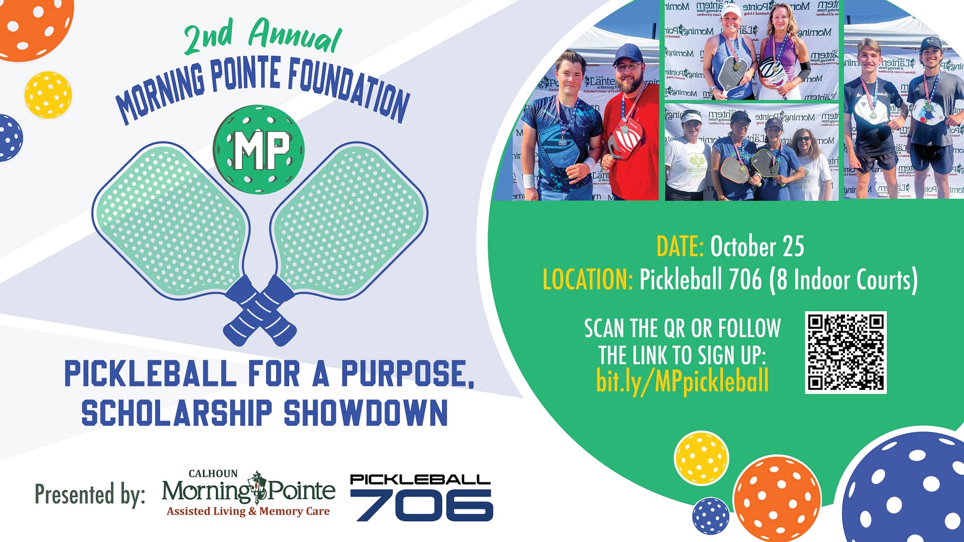 CALHOUN, Ga. (October 23, 2025) — The wait is almost over! In just two days, players will grab their paddles and hit the courts for a cause that changes lives. The 2nd Annual Morning Pointe Foundation Pickleball for a Purpose Scholarship Showdown returns Saturday, October 25, to Pickleball 706 in Calhoun — North Georgia’s premier indoor pickleball facility.