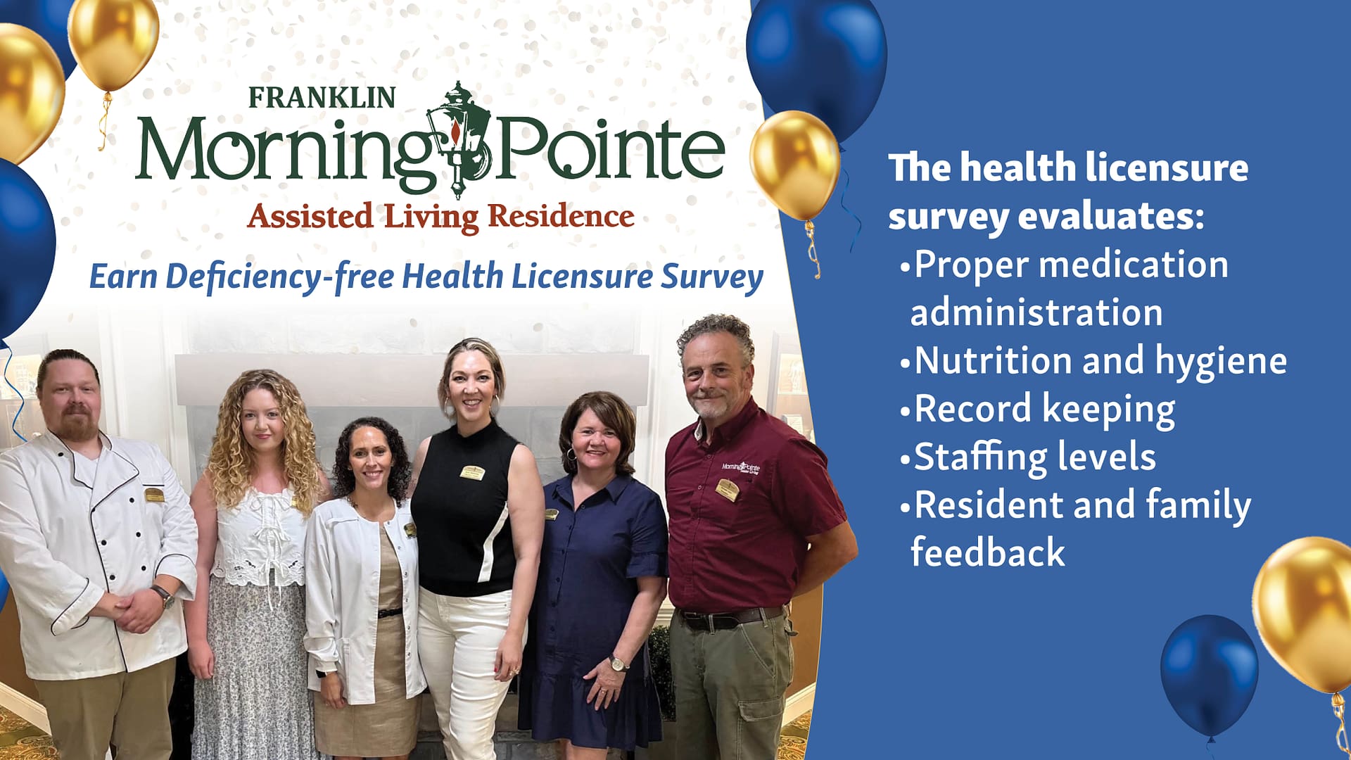 “This accomplishment is a direct reflection of the dedication and professionalism of our Franklin associates,” said Bebe Kennedy, Senior Vice President of Operations for Morning Pointe Senior Living. “These results reaffirm to families that quality and safety remain at the forefront of everything we do.”