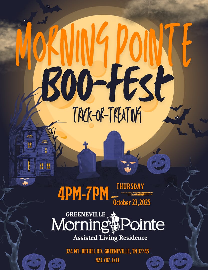GREENEVILLE, Tenn. (October 9, 2025) — Morning Pointe of Greeneville Assisted Living invites families and children of all ages to join in the Halloween fun at its annual Boo-Fest on Thursday, October 23, from 4 to 7 p.m. at 324 Mt. Bethel Road in Greeneville.