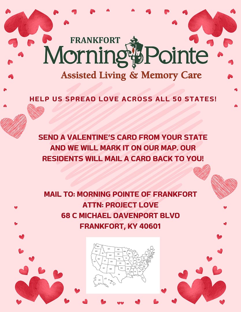 Frankfort, Ky. (January 22, 2026)— This Valentine’s Day season, love is traveling far beyond state lines at Morning Pointe of Frankfort Assisted Living & Memory Care.