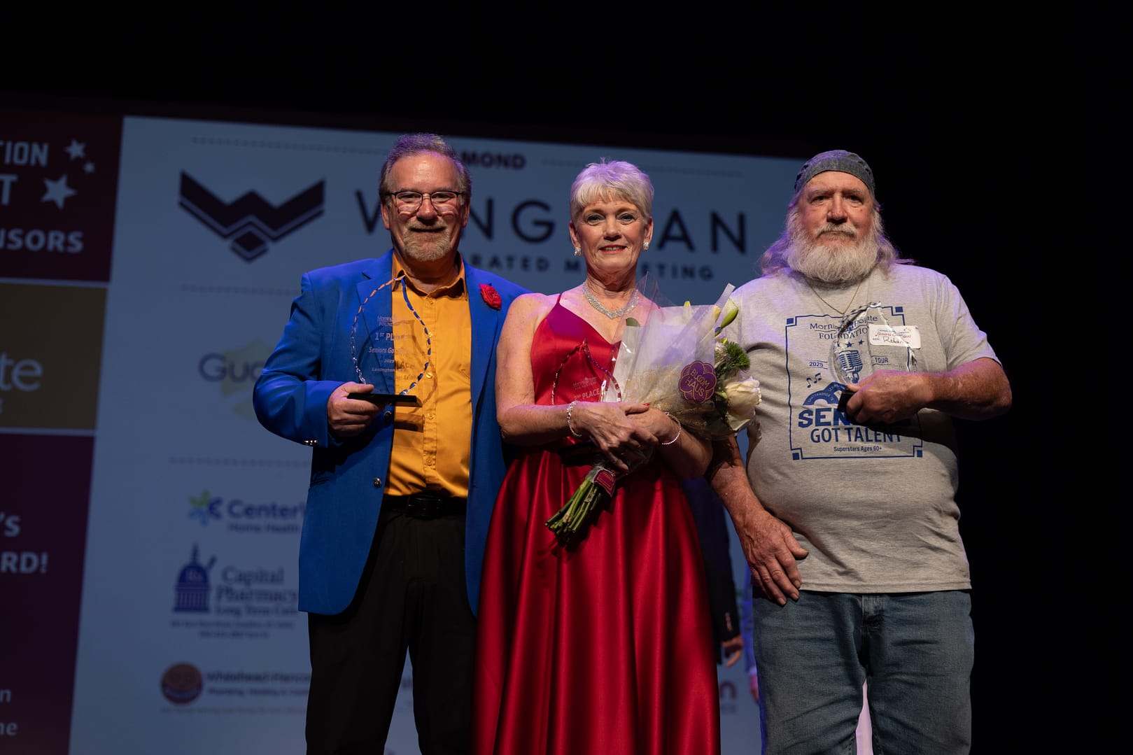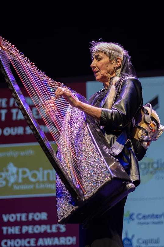 - 3rd Place & People’s Choice – Robin Gassett, 77, Cynthiana, KY: A Vietnam-era Army veteran, lifelong musician, farmer, and founder of the veterans nonprofit Licking River Outfitters, Gassett uses his platform to raise awareness about veteran suicide. He moved the audience with his original song “Folded in Her Arms,” written in memory of his late friend and fellow veteran, Scott County Sheriff’s Deputy Caleb Conley. His performance earned him third place, a $250 cash prize, and the coveted People’s Choice Award, determined by community votes. With every $1 equaling one vote, the People’s Choice competition raised vital funds to support the Morning Pointe Foundation.