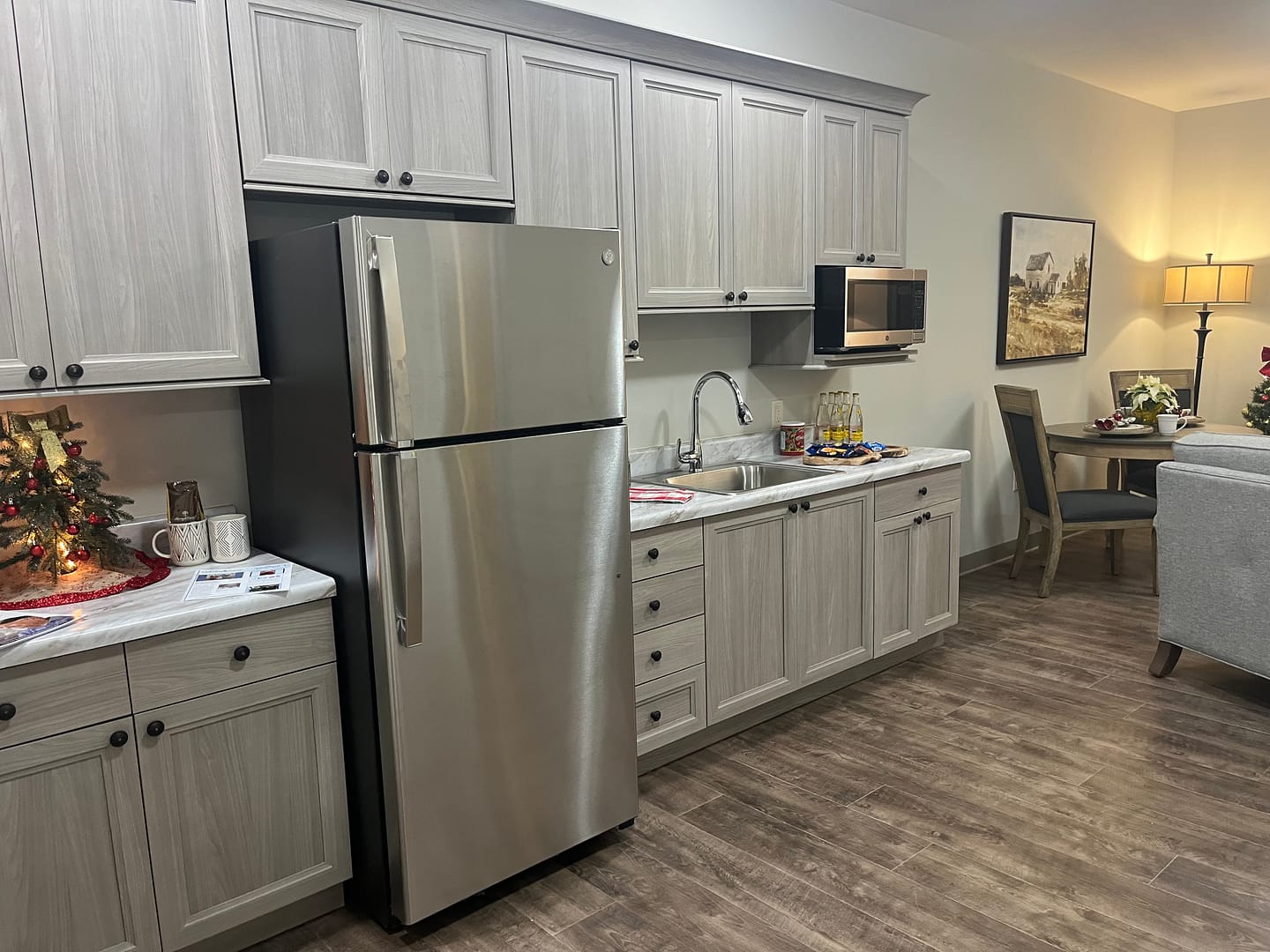 This community is a single-story building with 58 spacious assisted living apartments, 14 suites with kitchenettes and stackable washer/dryer combos, and multiple floor plan choices.