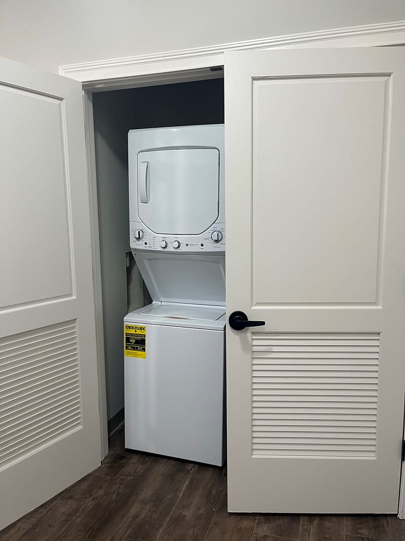 Select suites include full-size refrigerators and stackable washer/dryers.