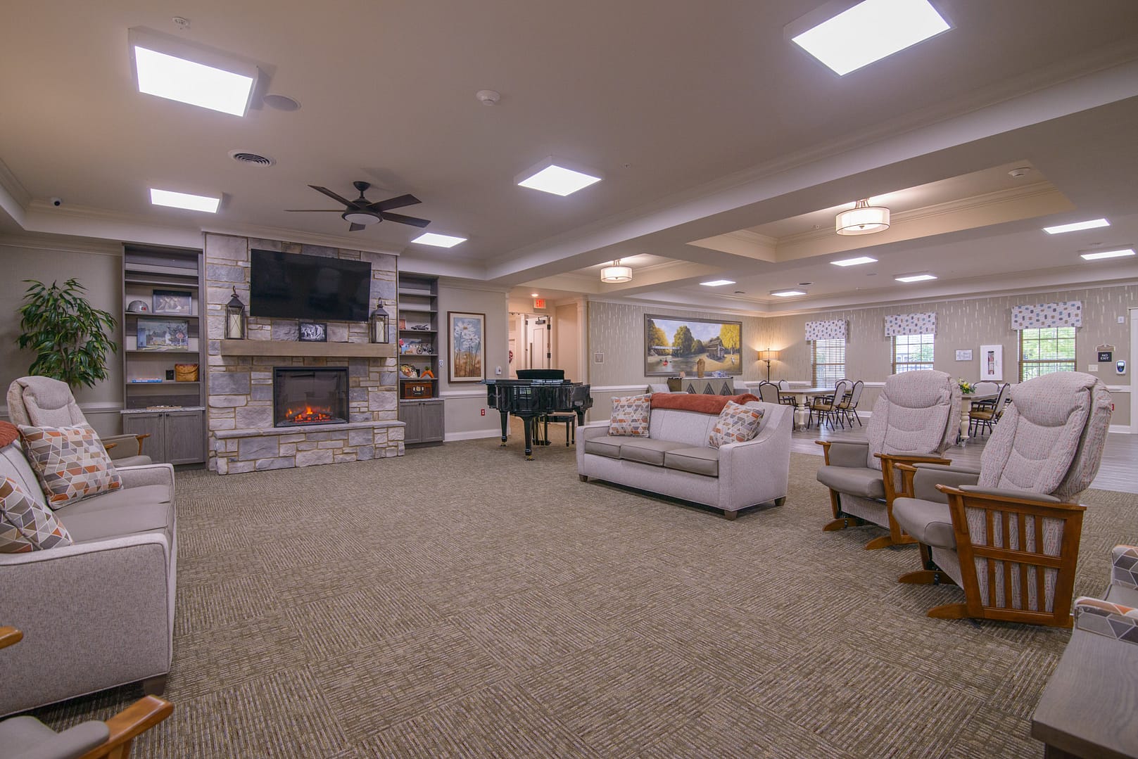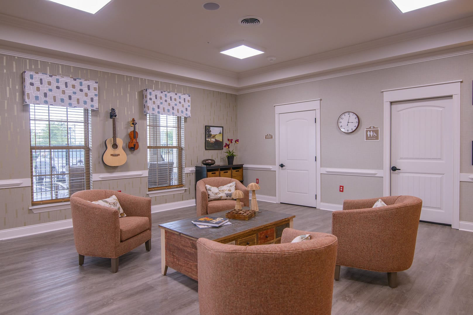 - Offers a smaller, more intimate space designed to be calming for residents who may be easily overstimulated.